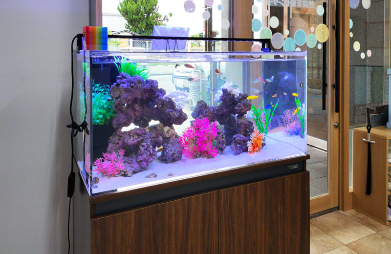小さな子供たちも通う療育施設のエントランスに、90cm海水魚水槽を設置しました。