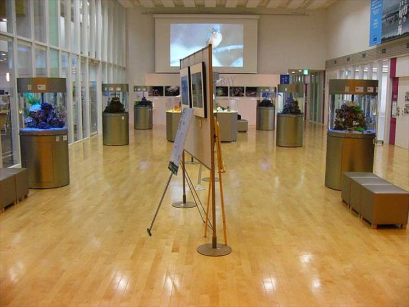 江戸川区の歴史や文化、産業、自然を中心に様々な水中の生き物を楽しめる企画展示ギャラリーに円柱水槽を複数台設置しました。