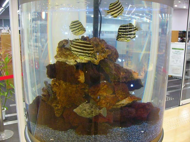 両面仕様の水槽は、窓際に設置すれば室内と道路側の両方から楽しむことができるのがメリットです。