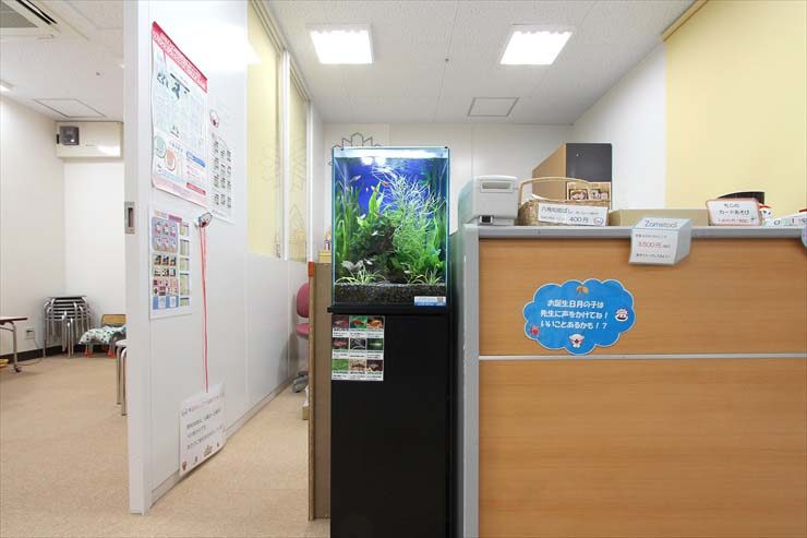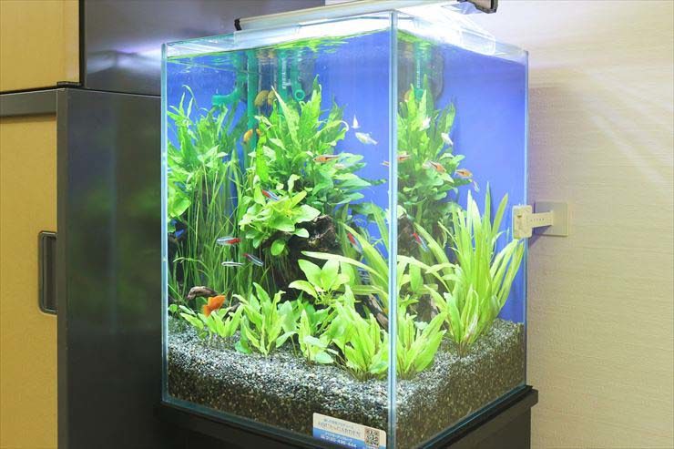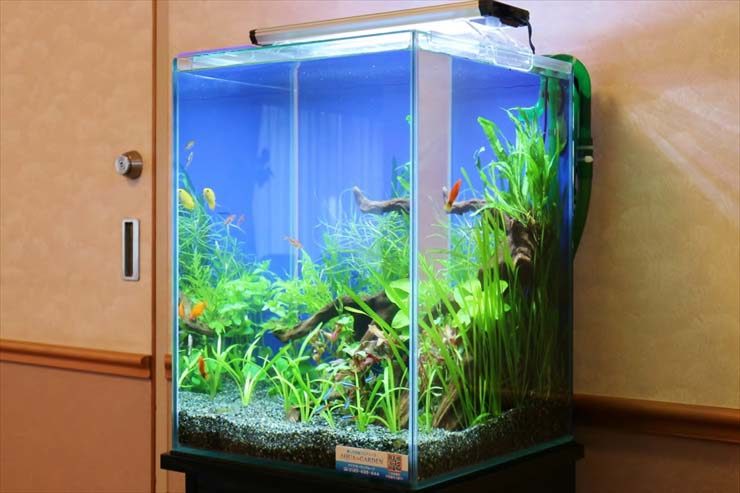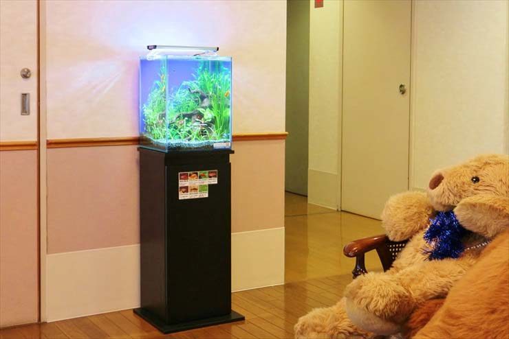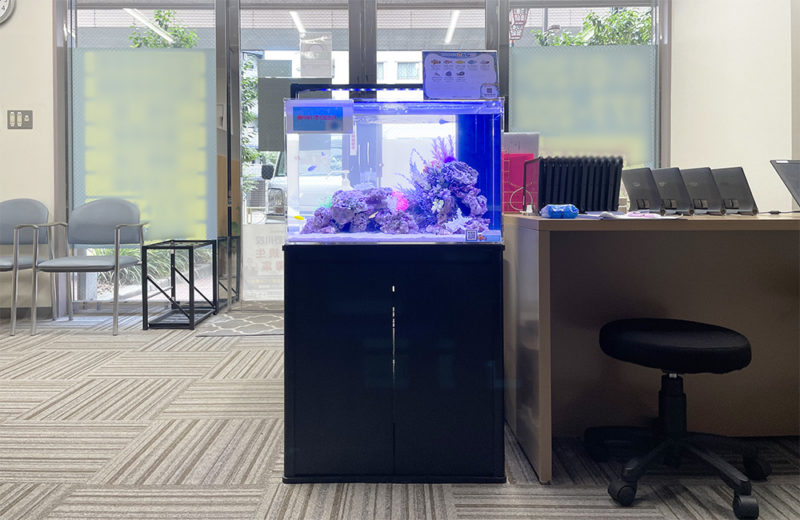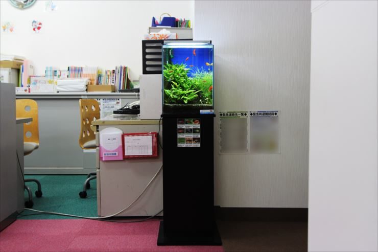 コンパクトな30cm水槽は、キャビネットやデスクが並ぶ事務室にも設置ができます。
