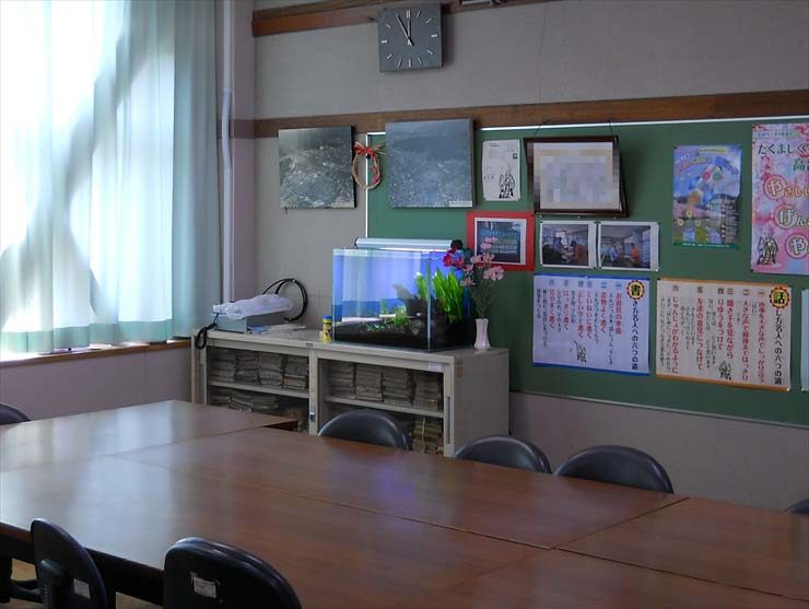 校長室に設置された60cm淡水魚水槽は、校長先生と子供たちの距離を縮めるきっかけとして活躍します。