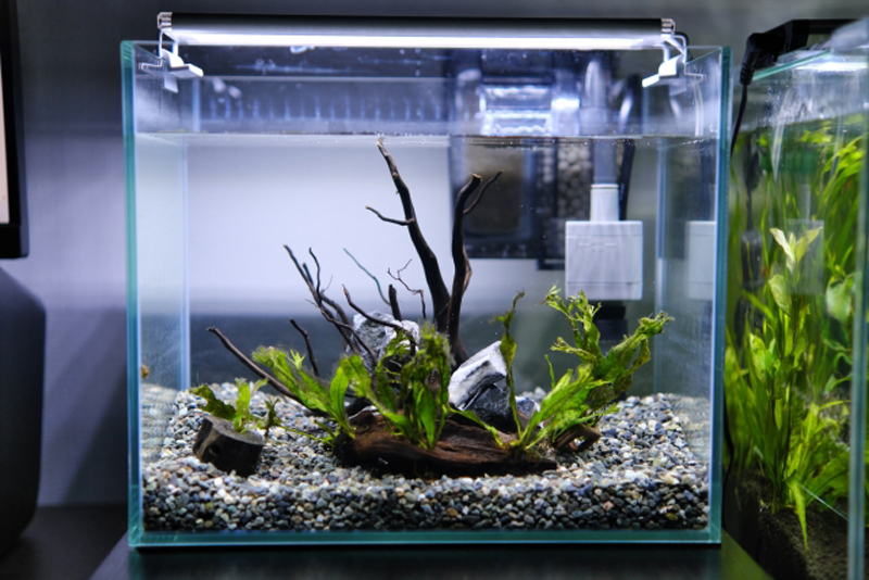 例えば水草は、育成に専用照明やCO2添加が必要ない、アヌビアスナナやミクロソリウム、マツモなどを中心にレイアウトすると経済的です。