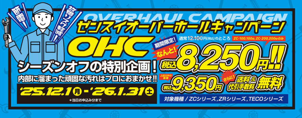 ゼンスイでは、毎年冬の時期にお得にオーバーホールを行えるキャンペーンを実施しています。
