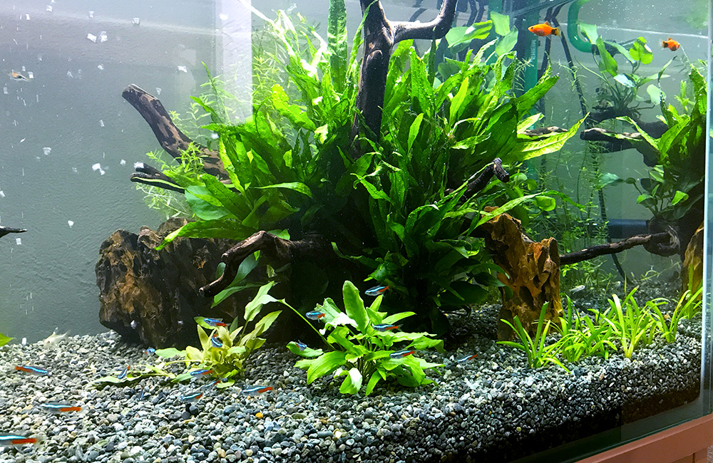 水草は、レイアウトの一部としてだけでなく、魚たちの休憩場所にもなる大切な存在です。