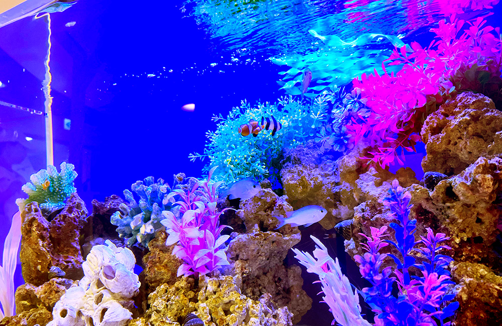 好奇心を刺激する鮮やかな海水魚水槽で子どもたちの視線を誘導!