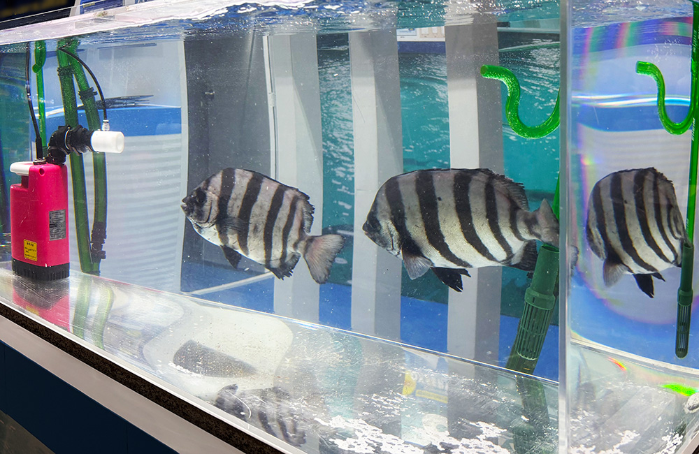 特に、いけす水槽は活魚の新鮮さをアピールするのに最適で、前回の2024年の事例では幼魚のイシダイを展示しました。