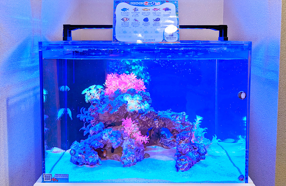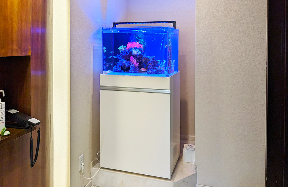 また、カラフルな海水魚たちが泳ぐ様子も相まって、鑑賞性の高いアクアリウムに仕上がりました。