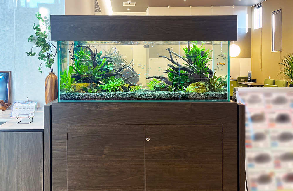 京都トヨペット株式会社様に設置!120cm淡水魚水槽のレンタル事例