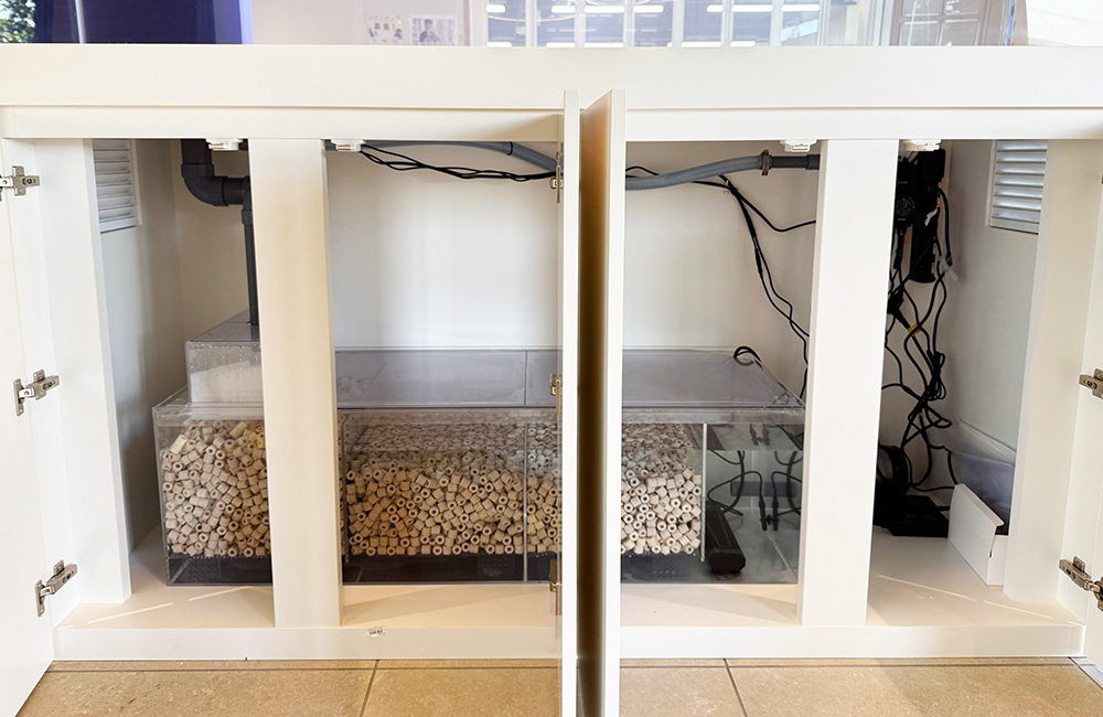 今回のろ過槽も、メンテナンス性と美観を両立させた、大型魚飼育に最適な仕様です。