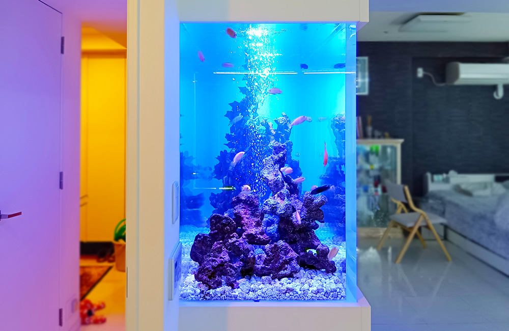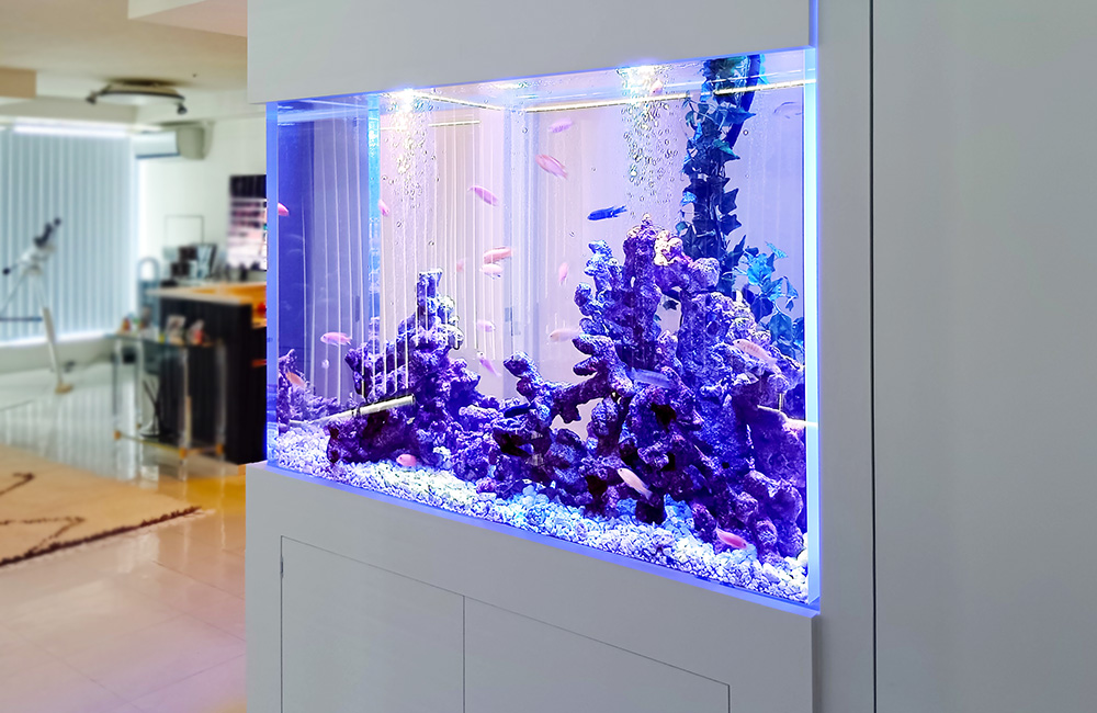 水槽の設計から製作、設置場所への搬入や水槽設置まで行うため、お客様は理想のアクアリウムを導入することが可能です。また、ご希望の場合は、設置後の定期メンテナンスサービスも承っておりますので、常に美しい水景を楽しめます。