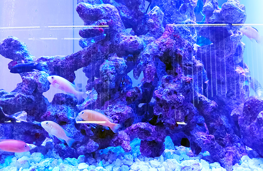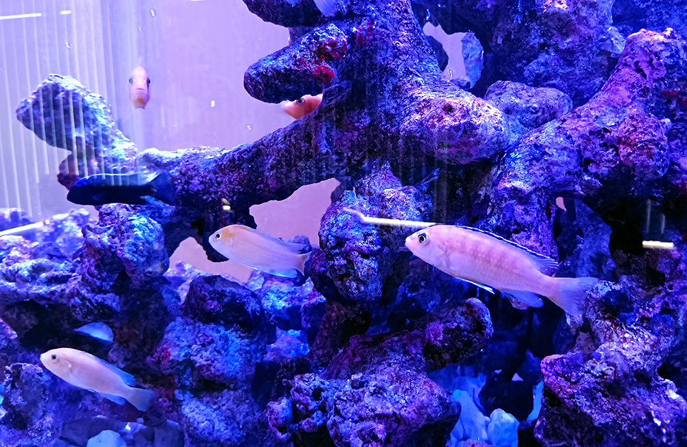 淡水魚でありながら海水魚水槽のようなレイアウトを楽しめるシクリッド水槽は、幻想的な空間を演出したい方にはおすすめのアクアリウムです。