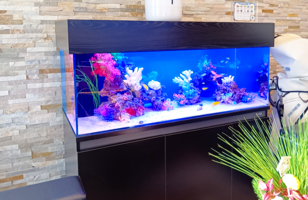 おしゃれなオフィスにも自然に溶け込み、魚たちの躍動感が「生きたインテリア」としてワンランク上の空間を演出します。