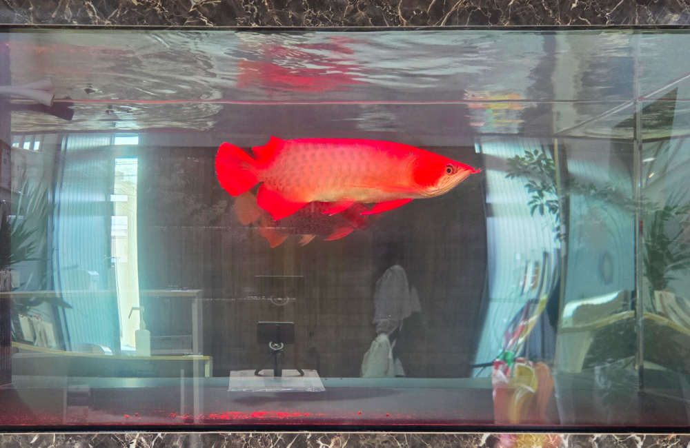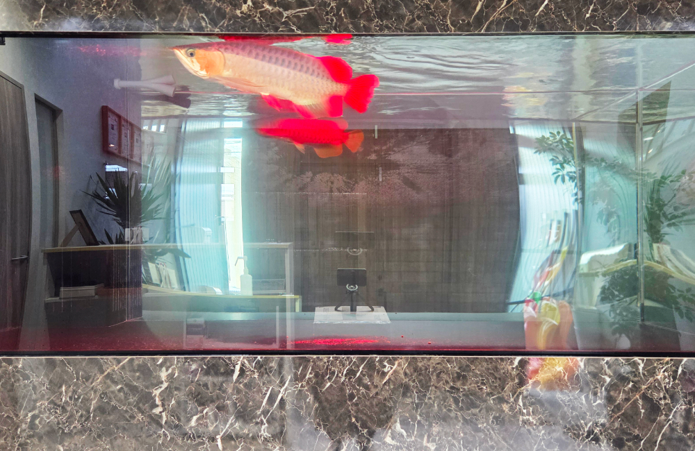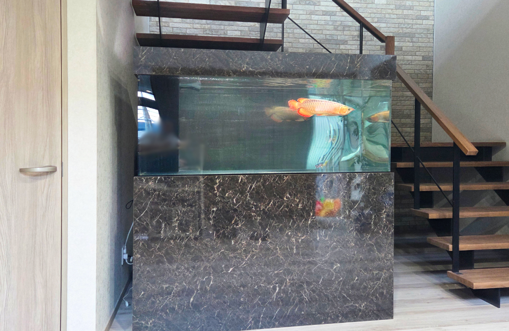 水槽が単なる飼育設備ではなく、インテリアの一部として空間に溶け込み、アロワナの魅力を一層引き立てます。